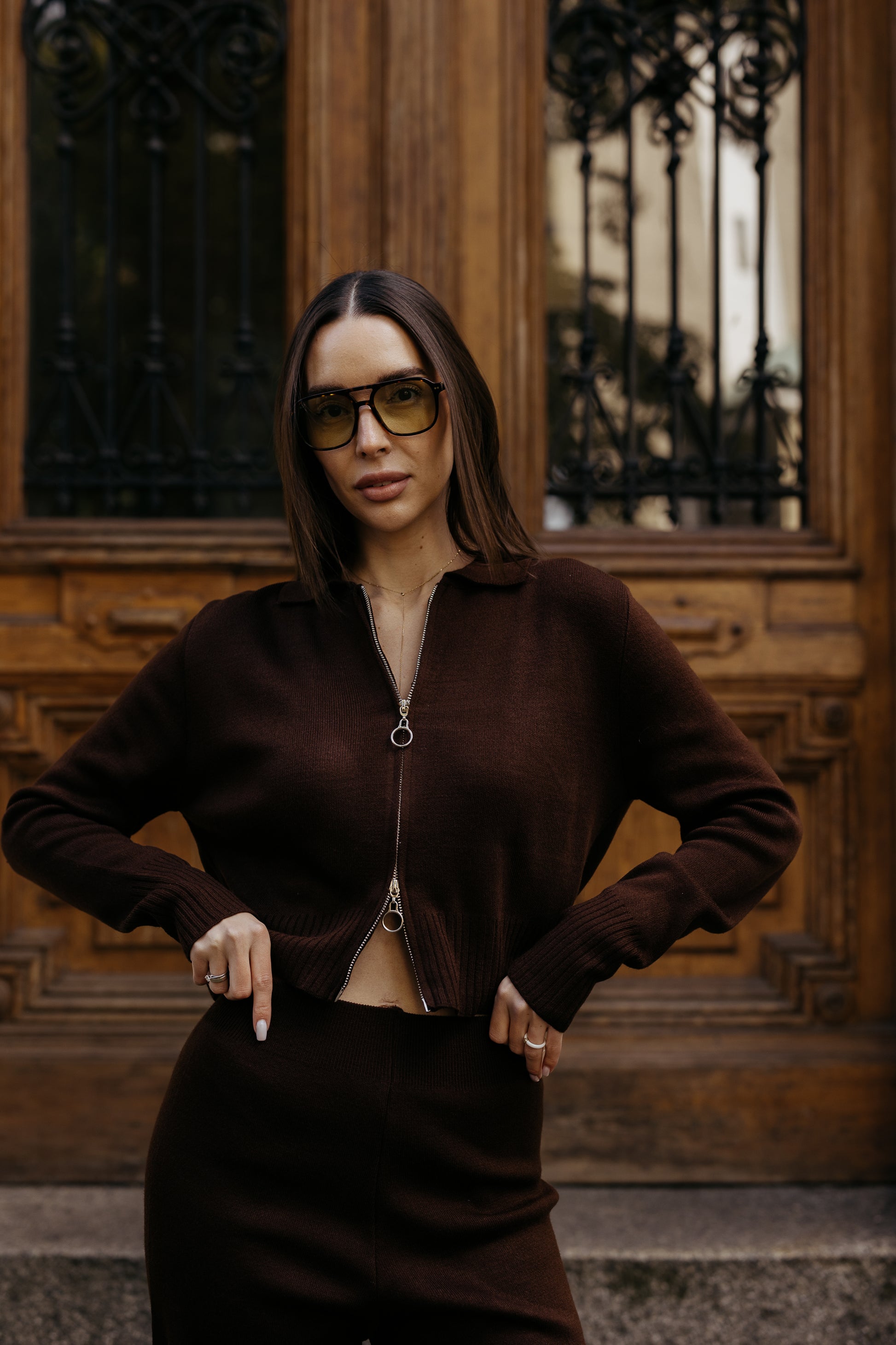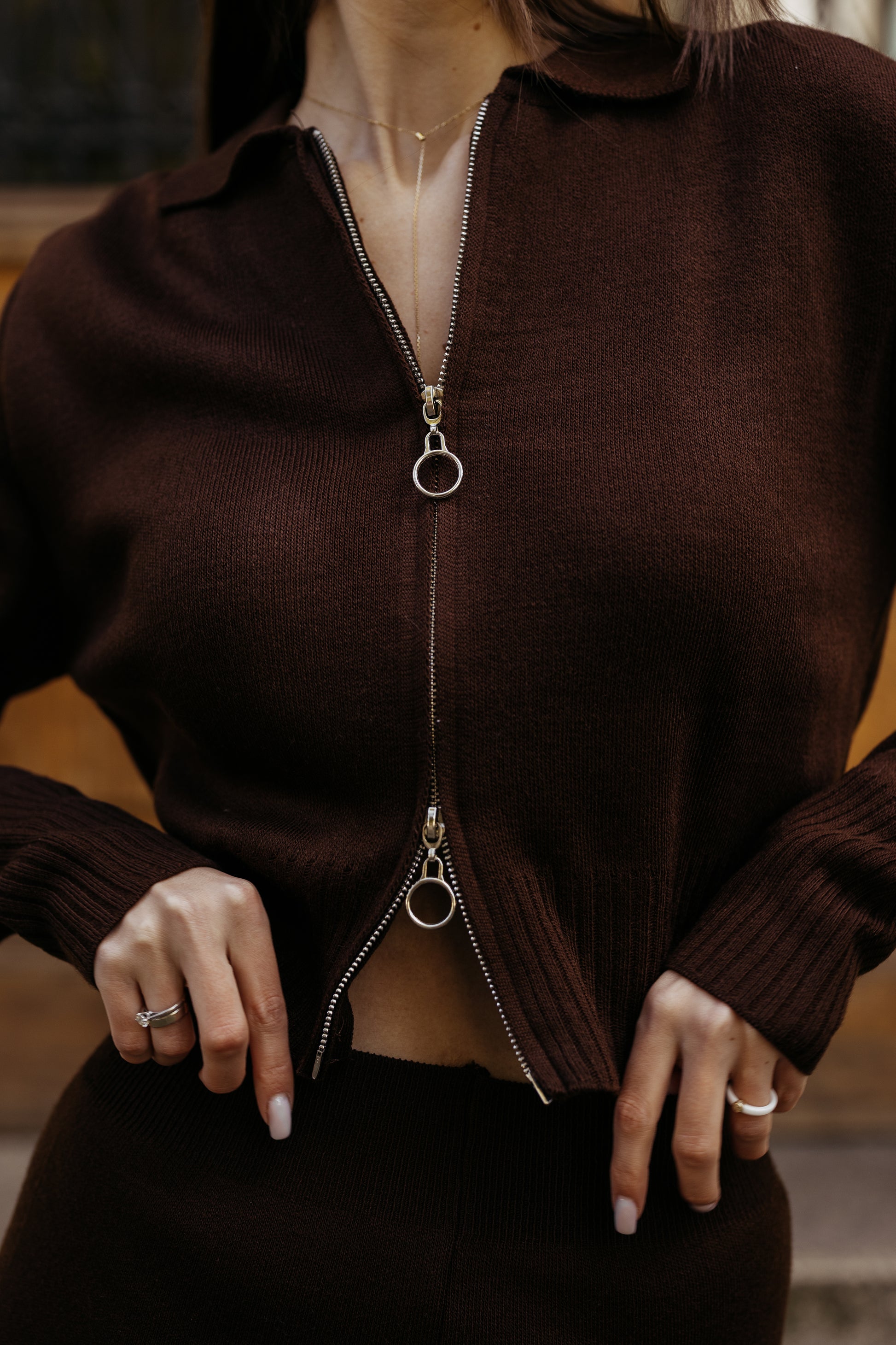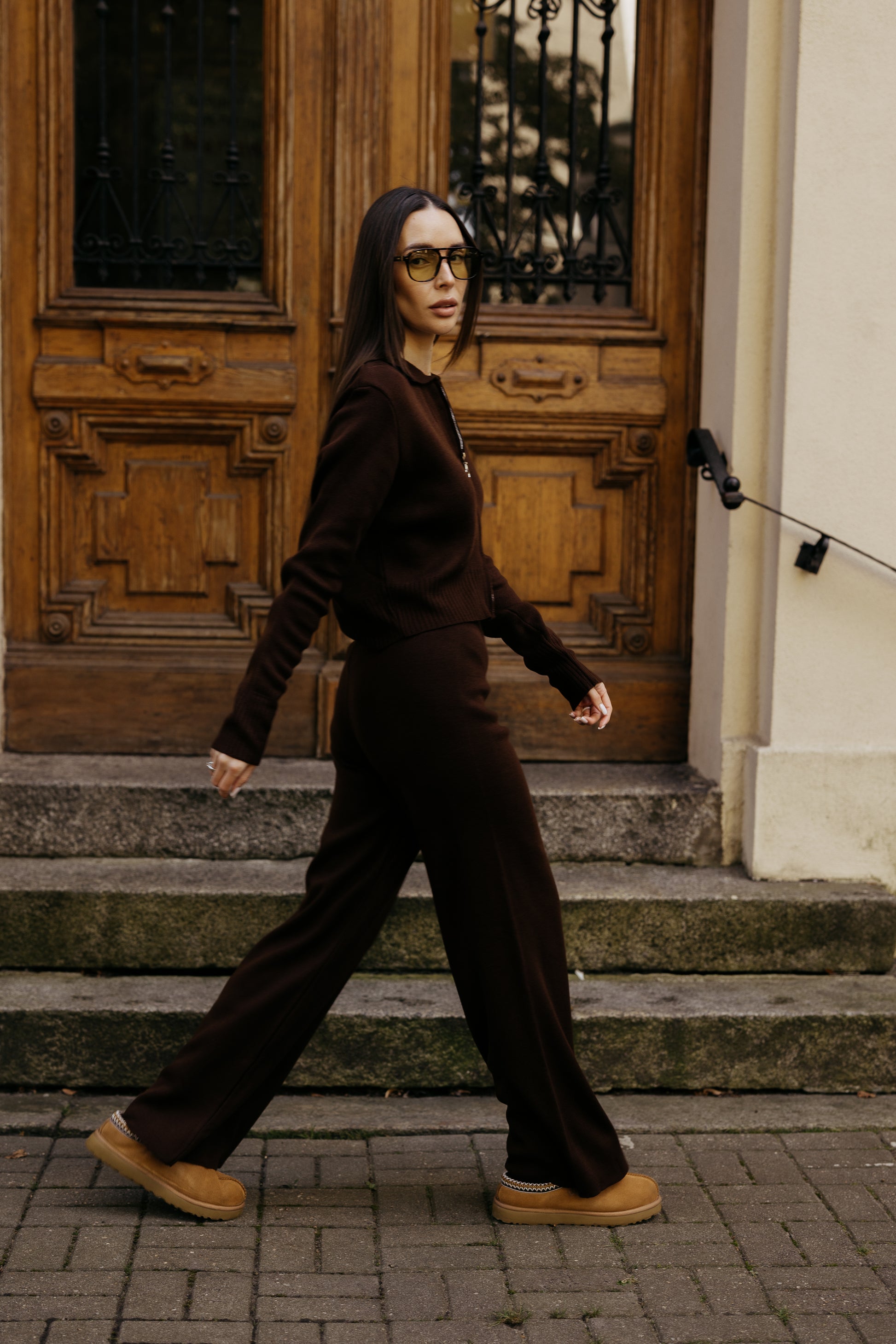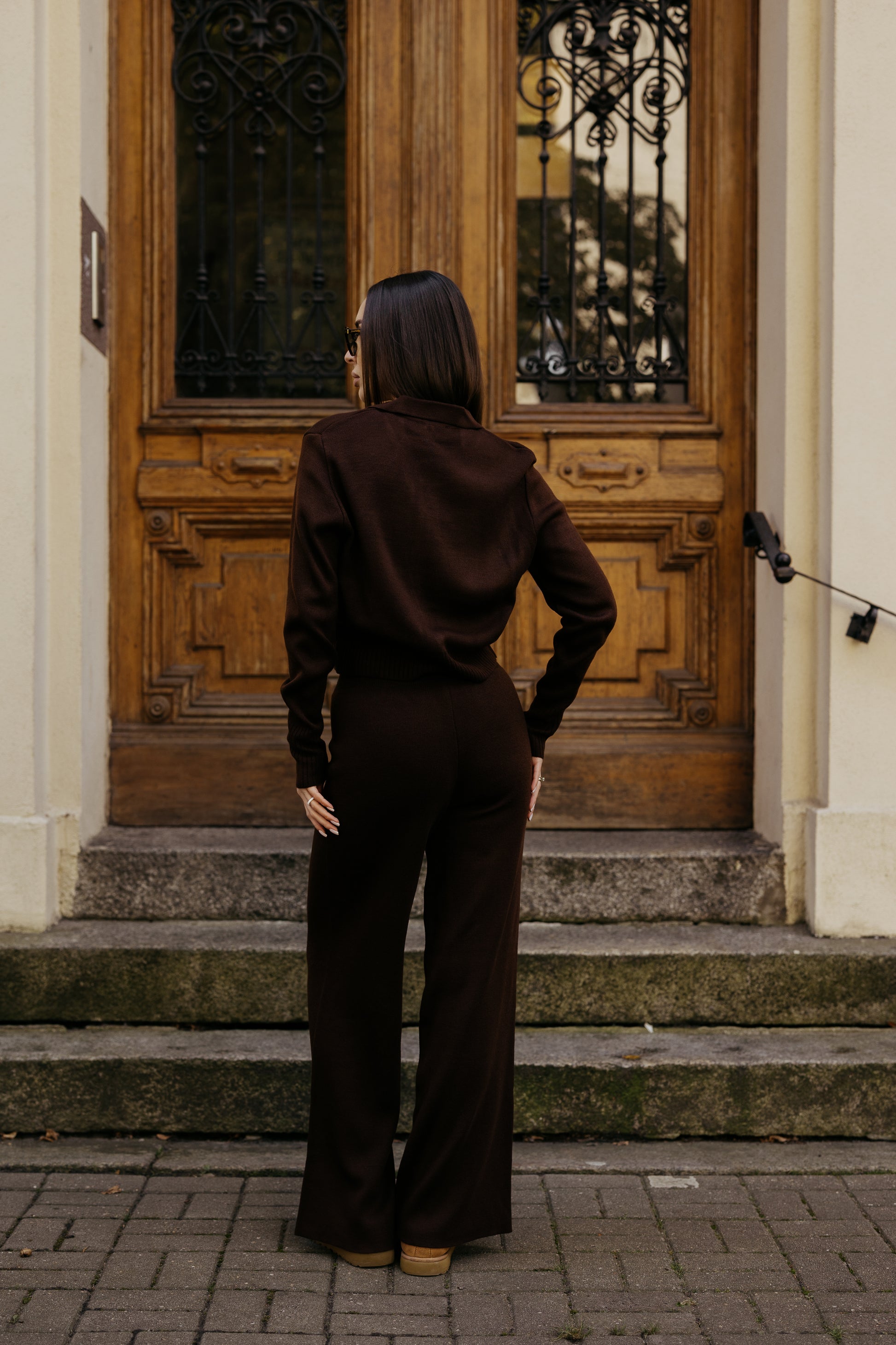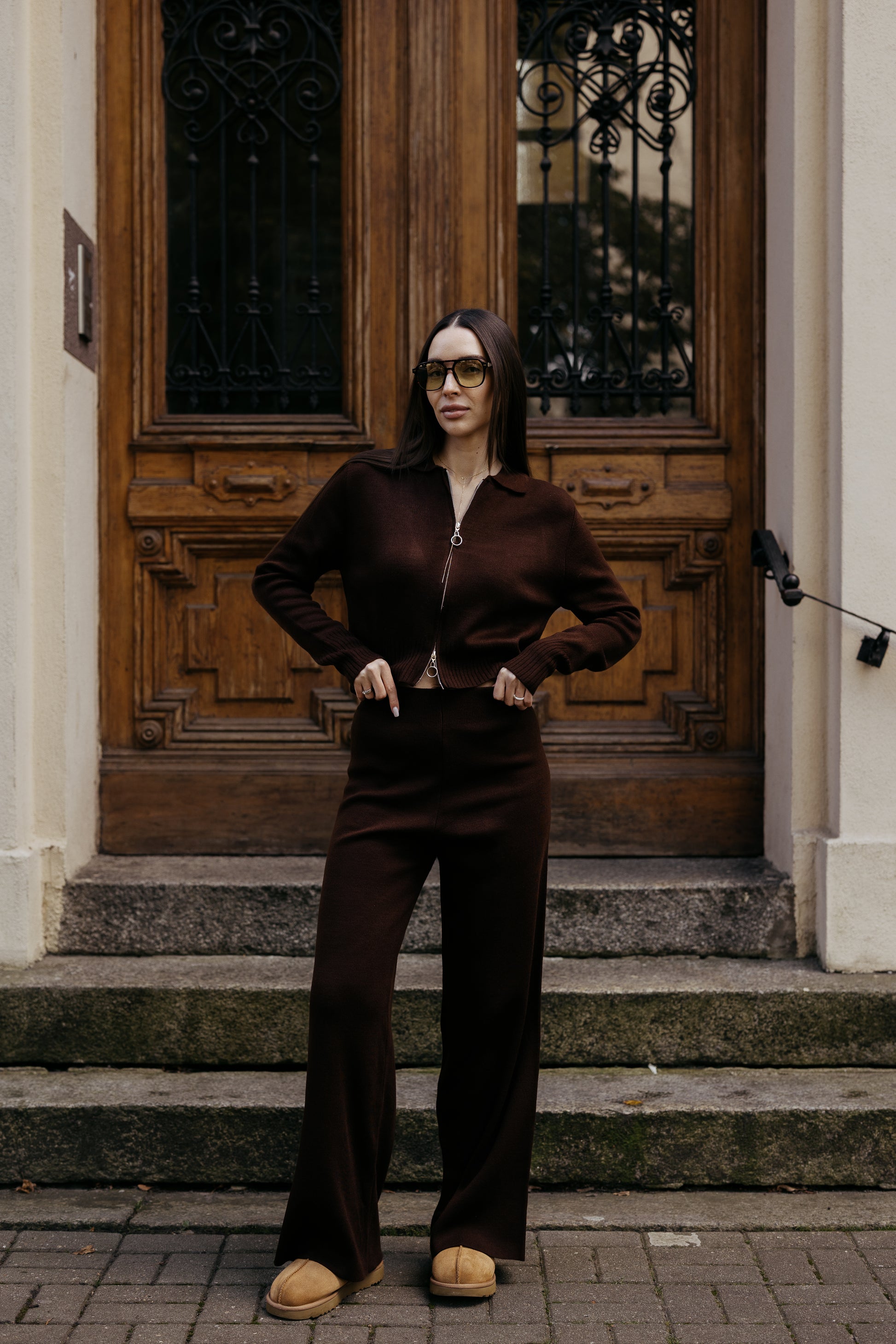 Komplet dzianinowy z zamkiem BRĄZOWY