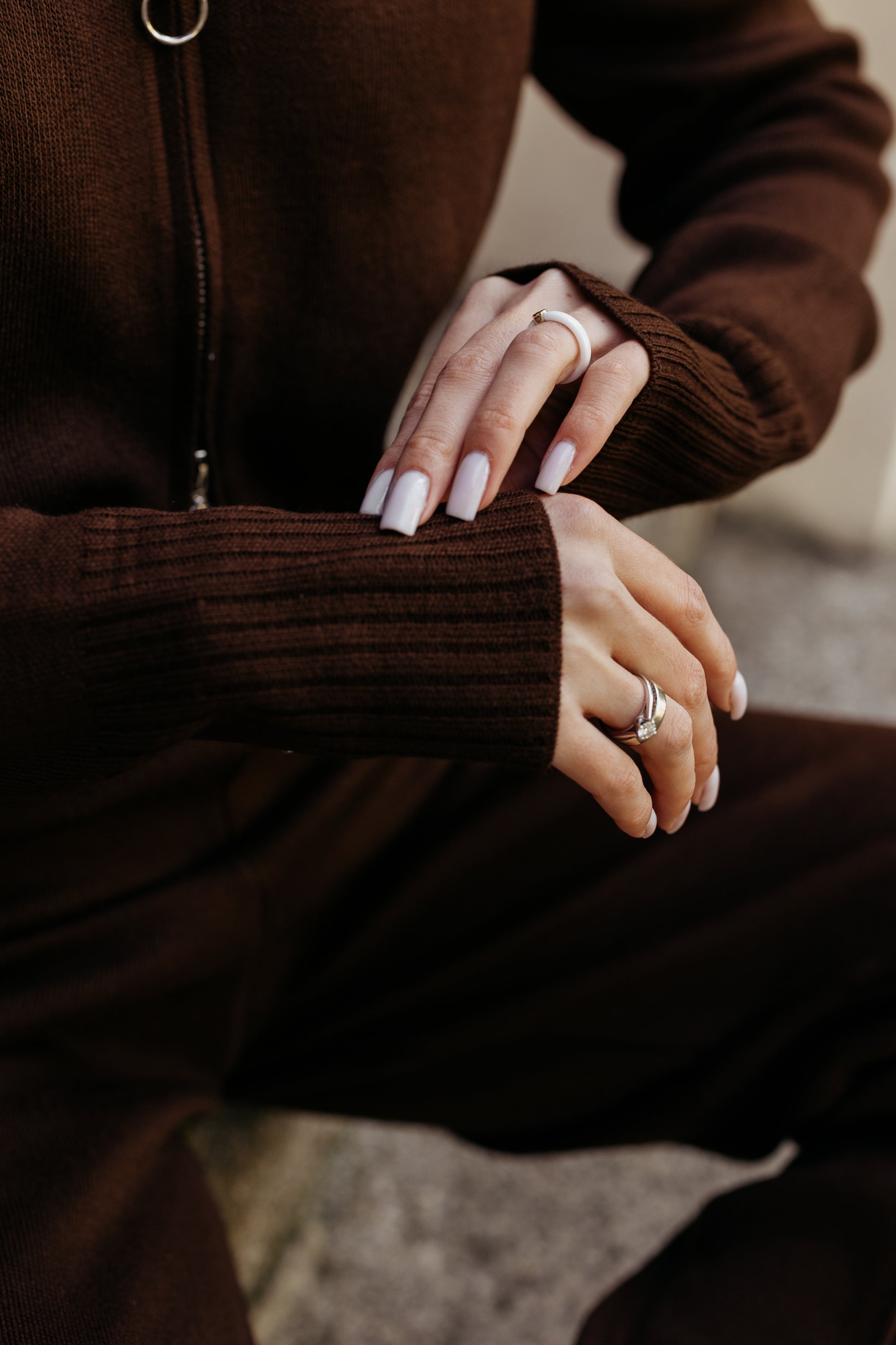 Komplet dzianinowy z zamkiem brązowy