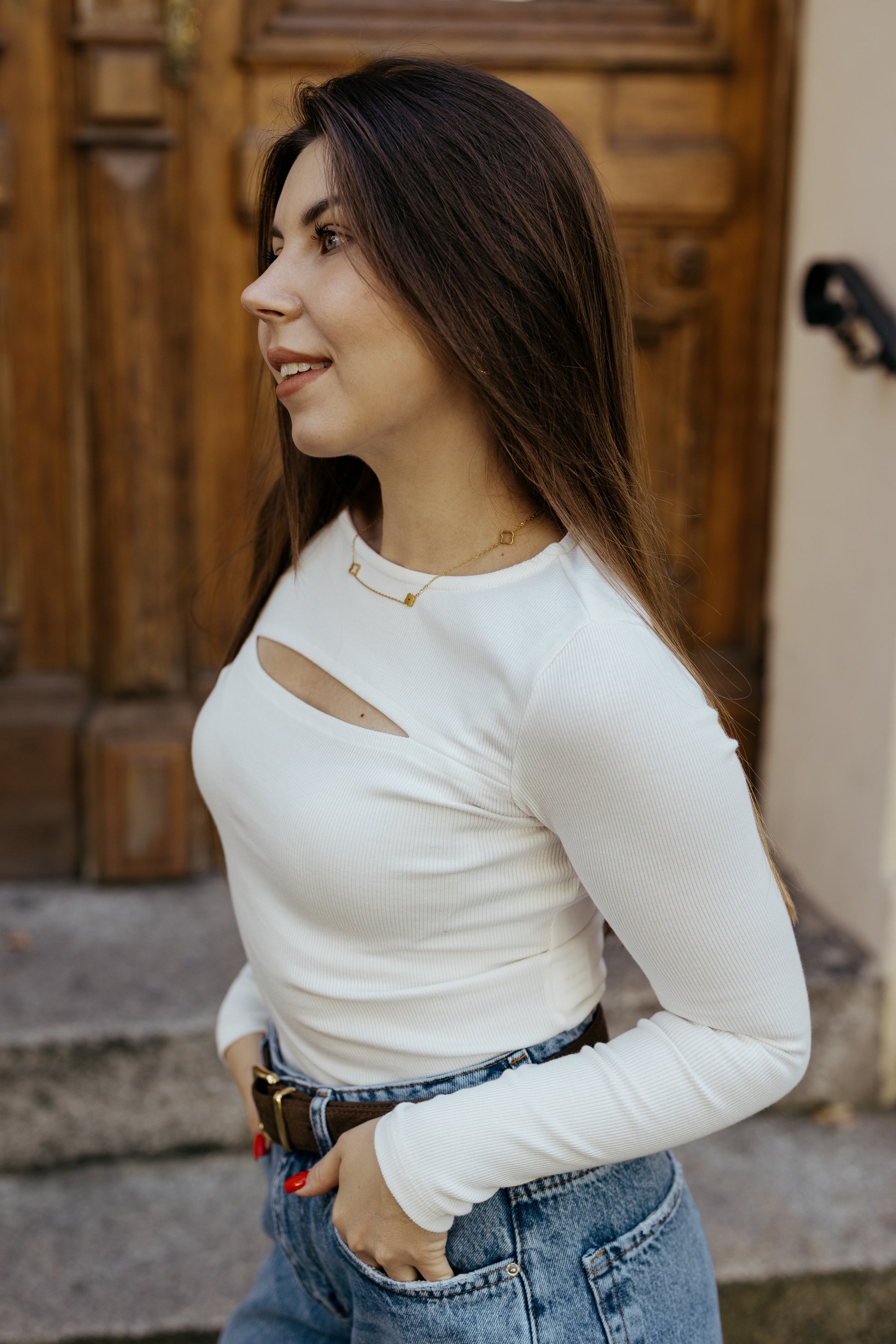 Elegancki longsleeve, wykonany z miękkiej i elastycznej bawełny, który idealnie podkreśla sylwetkę. Jego charakterystycznym detalem jest subtelne wycięcie na dekolcie, dodające całości nowoczesnego i kobiecego akcentu.
